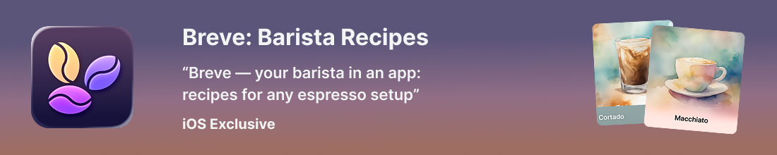 Breve is an iPhone/iPad app by Natalia Panferova that brings café-style recipes to your kitchen, adapting to whatever equipment you have.